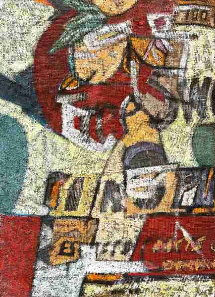 James Poteat American, 1934 – 2010 Rural to Urban, ca. 1950s Oil on burlap 28 x 20 inches Titled on label on reverse #18329