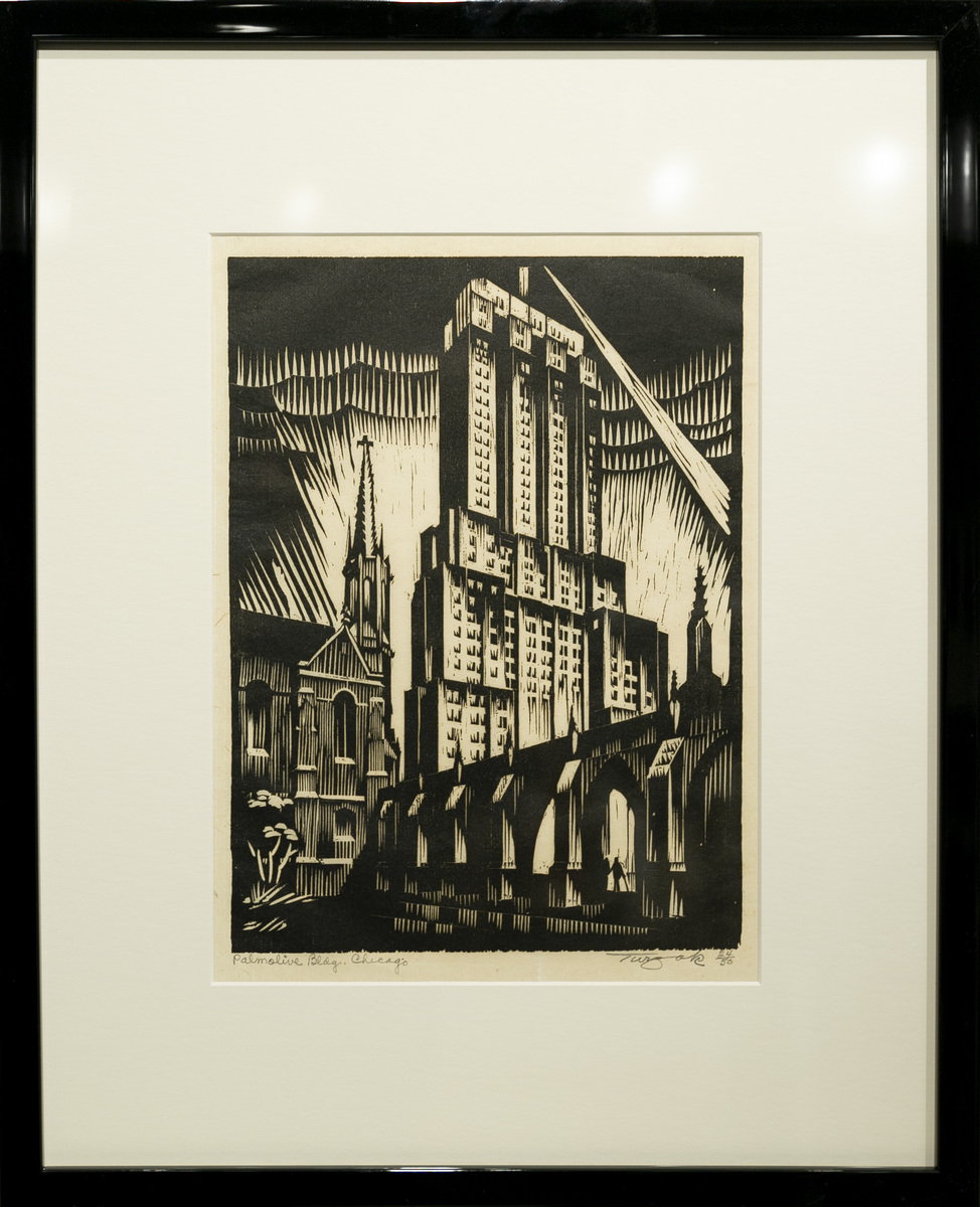 Palmolive Building, 1931 Woodcut on paper 9 x 12 1/4 inches Signed and titled and numbered in pencil