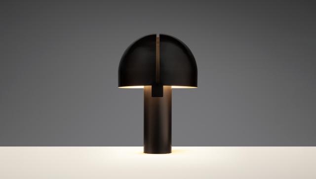 Coram Table Lamp – shown in darkened and natural brass